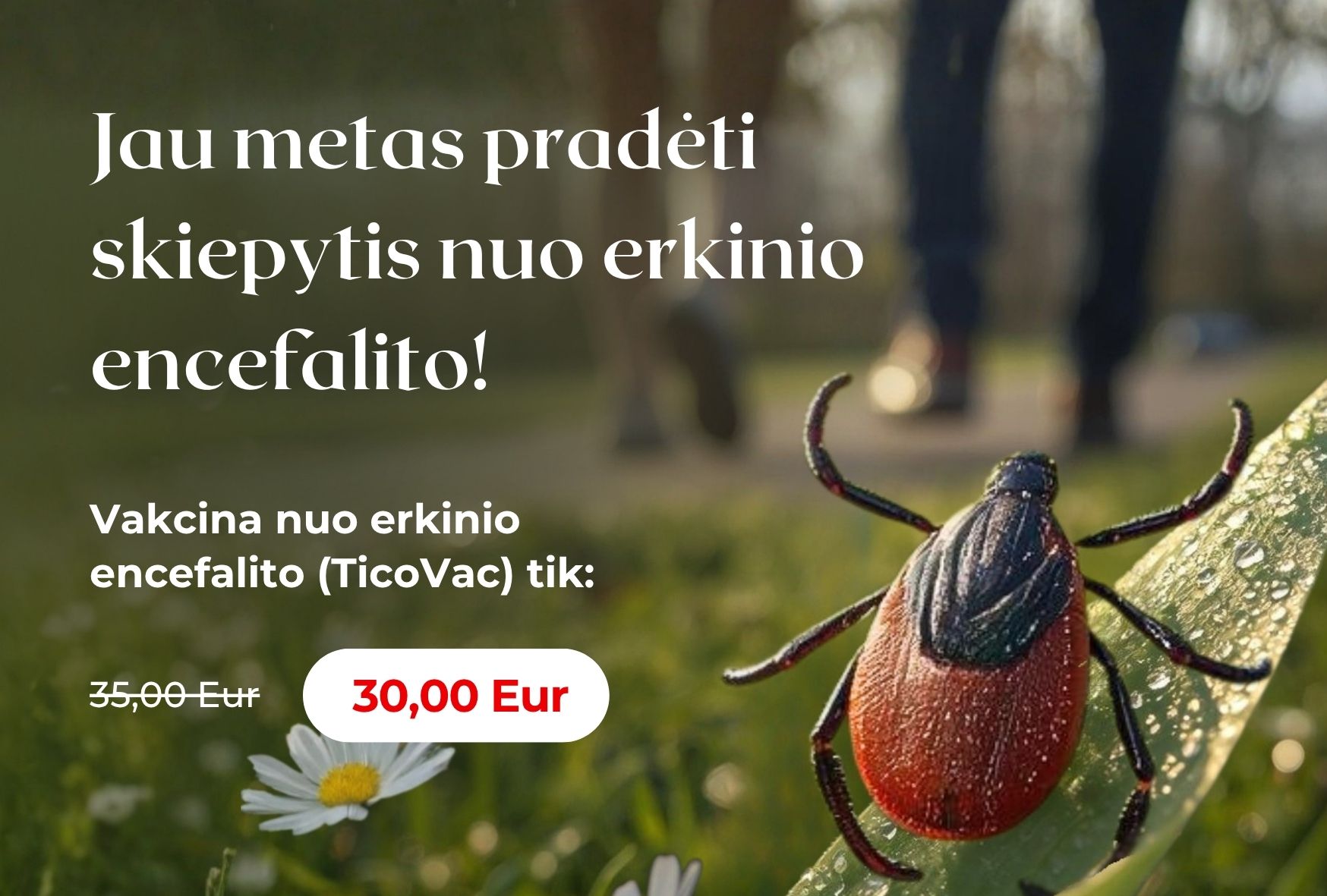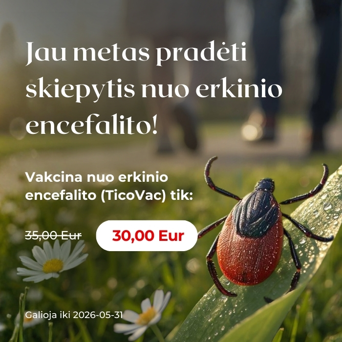 Vakcina nuo erkinio encefalito tik 30,00 Eur vietoje 35,00 Eur.
