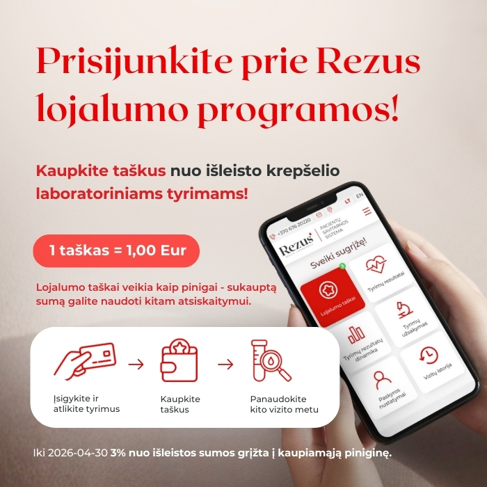 Pacientai, kurie 2025 m. jau atliko laboratorinius tyrimus Rezus, gali savitarnos sistemoje patikrinti, ar lojalumo taškai jau yra sukaupti ir panaudojami artimiausio vizito metu.